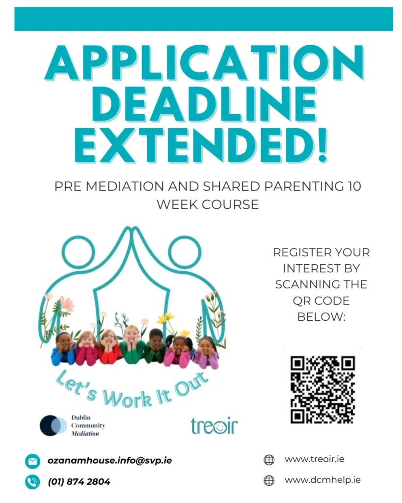 Contact: Gillian – Ozanam House Tel: 01 874 2804